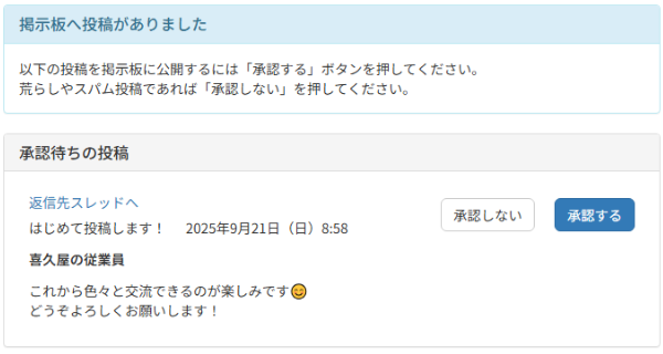 ユーザーが投稿した記事を管理者が内容を確認し、承認した記事のみを公開する機能です。